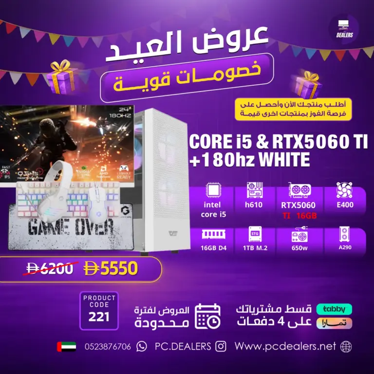 Full White INTEL CORE I5 & RTX5060 ti 16gb & 180HZ Monitor|Full setup 221