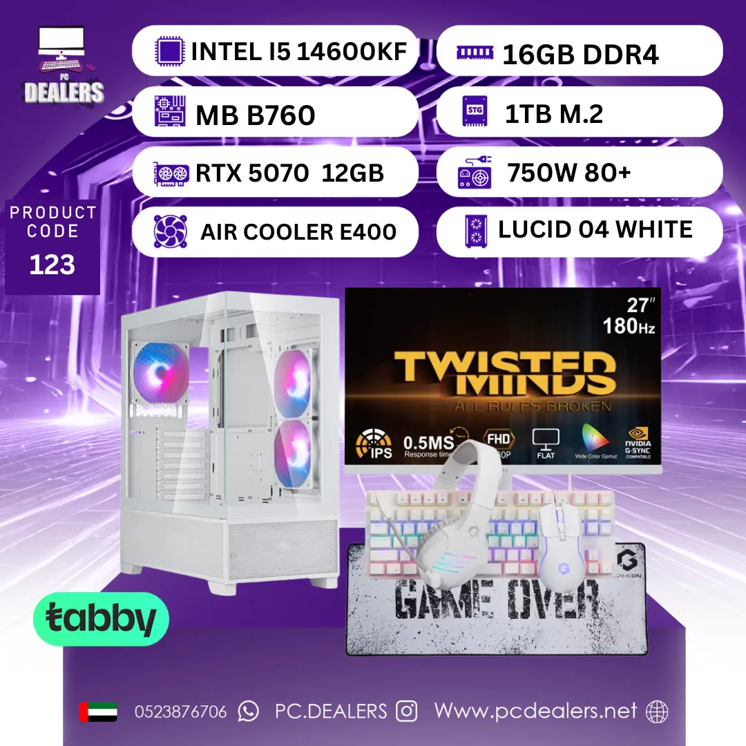 WHITE Intel i7 14700f & 5070 & 27INCH 180HZ Monitor|Full setup 218 نطاق السعر: من ⁦6,899.00 د.إ⁩ خلال ⁦7,725.00 د.إ⁩