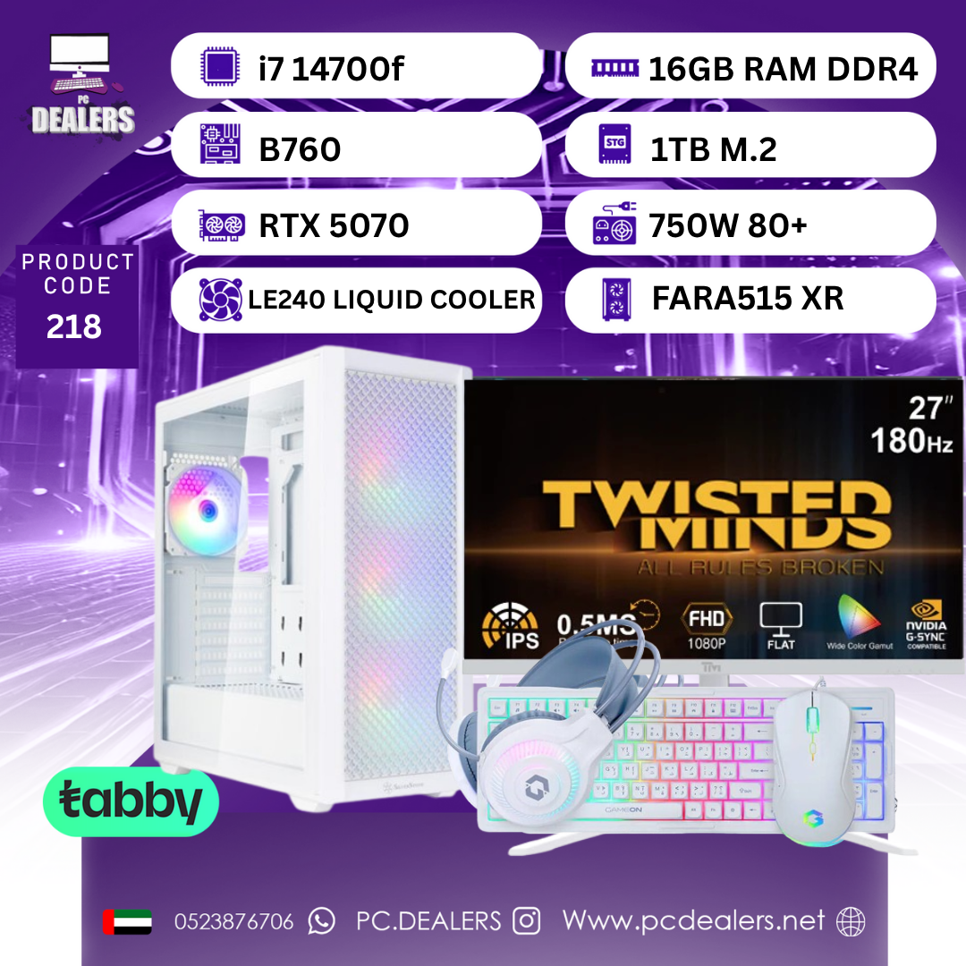 FULL WHITE Intel i7 14700K & 5070TI 16GB & 27INCH 2K 180HZ Monitor|Full setup 219