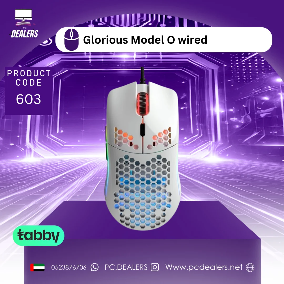 The Glorious Model O Wired is a lightweight gaming mouse known for its honeycomb shell, ultra-lightweight design (around 67g), and smooth Glide Skates for fast movement. It features: